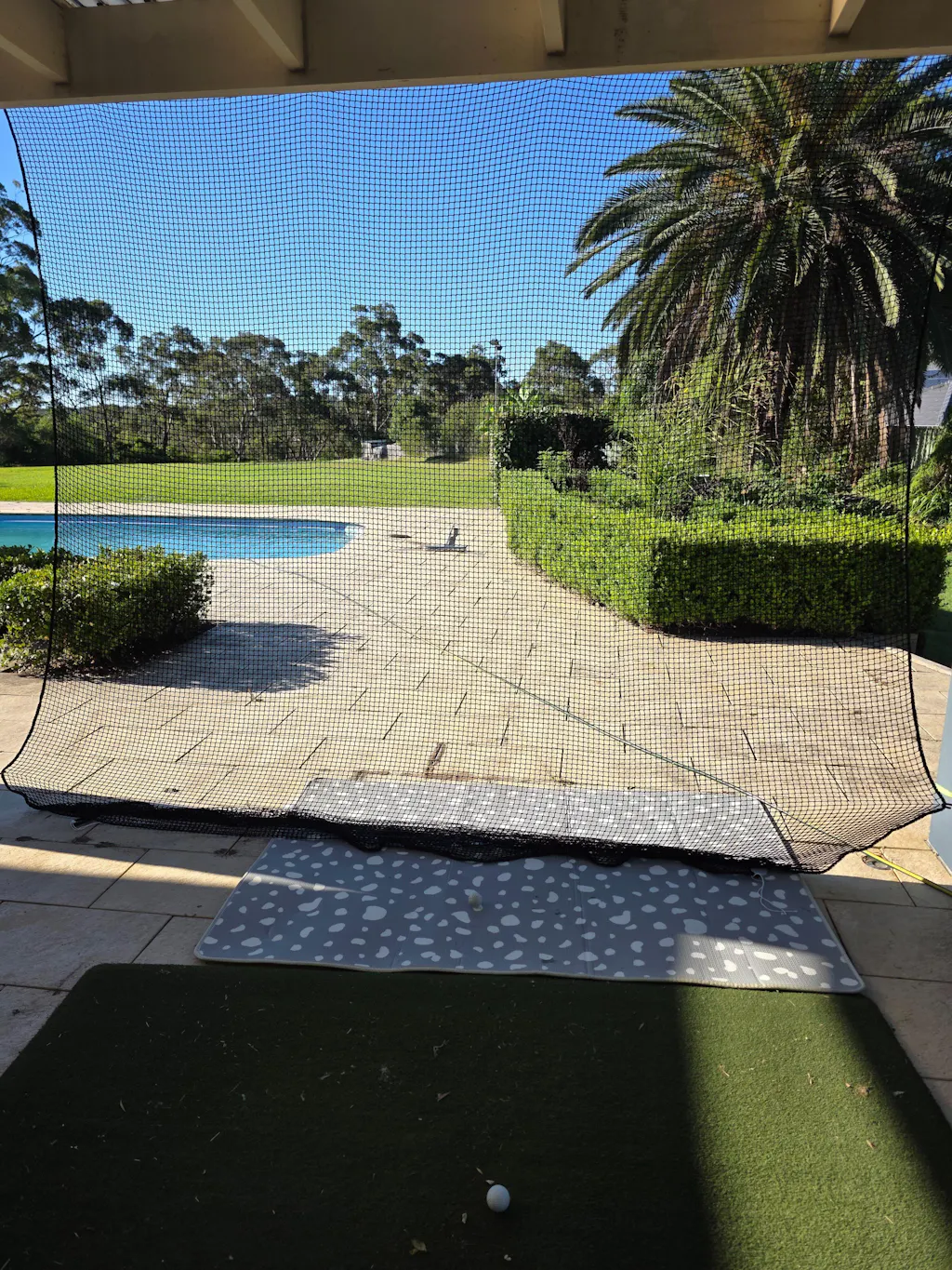 During covid we purchased the 3m x 3m golf impact net with rope border and steel posts it has been great to be able to practice and warm up before a game at home, we are downsizing and moving to a smaller property, so we are leaving the net to the new owners as it is still in great condition, we purchased another 3m x 3m golf impact net with rope (no posts) because we were so pleased with the last one however this time it will be suspended by a cable in the shed and it will be pulled out when required and retracted when not required and practice can be done in all weather conditions.