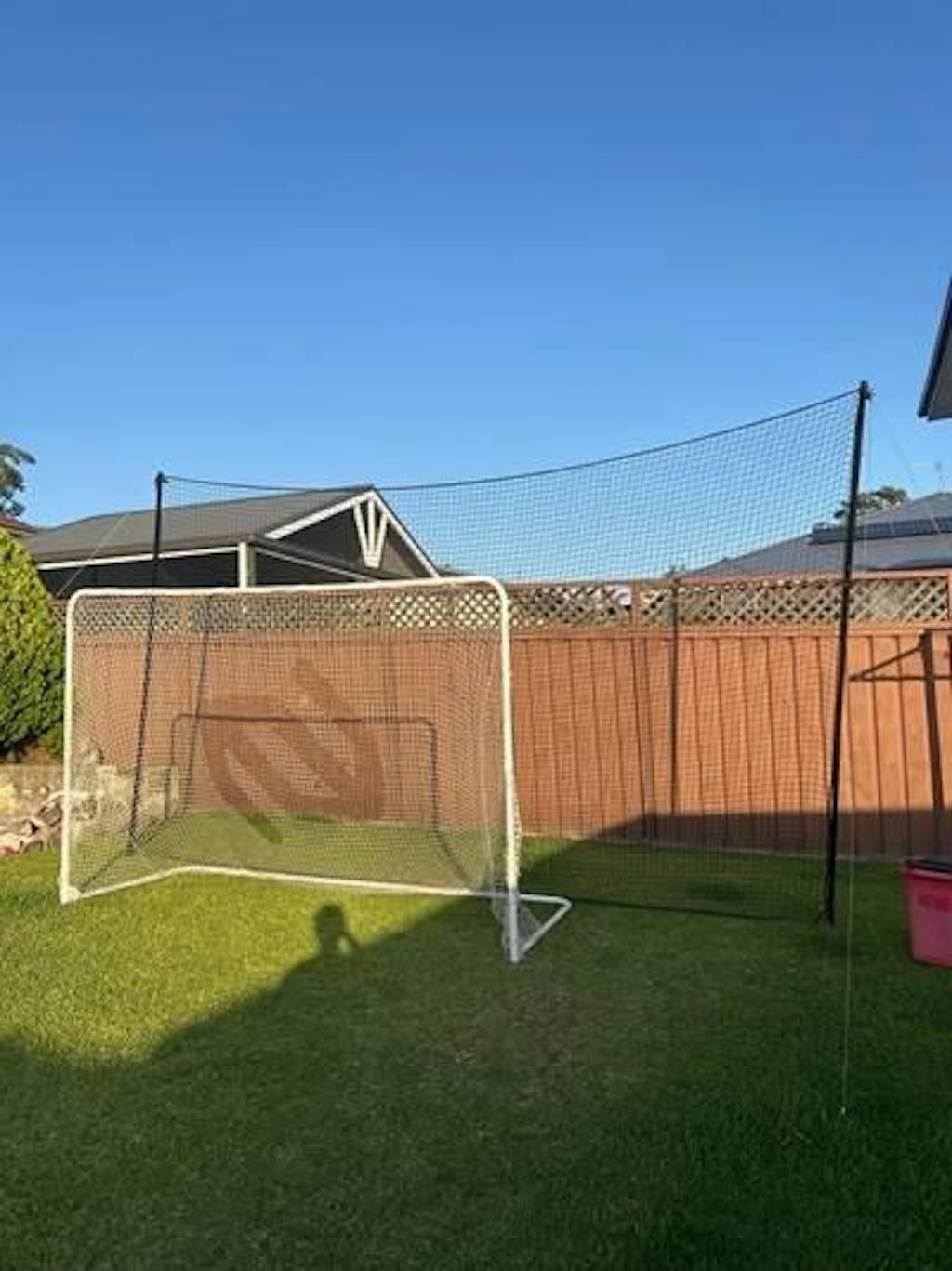A complete net and post package, suitable for Backyard Sports Practice at a high level. If you’ve got a suitable area, this will definitely help take yours (or your kids) game to the next level. It will stop the ball going over the fence as often, and is designed to last many years. This is a seriously high quality net, designed to be left outdoors all year. The package is affordable, and the posts are conveniently Semi-Permanent. It is FUN, FUN, FUN… Setup your yard with one of these nets, and watch their game go to the next level in the convenience and safety of your own backyard.